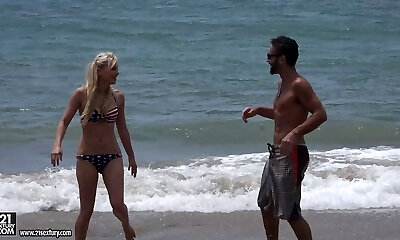 Big dick Leo fucks horny milf with humid seethrough shirt on beach