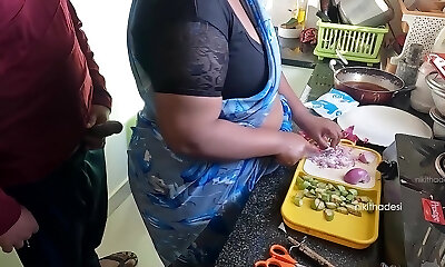 I spotted my aunty cooking alone in the kitchen, I hugged her and started shagging