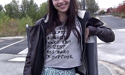 Horny schoolgirl Sandra approached on the street in Essen ,towed and fucked hard
