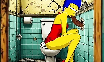 The Simpsons Porno Parody: Sexy Cheating Wife Marge Lets a Dark-hued Dude Tear Up Her In The Public Toilet