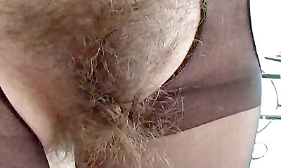 Dark Haired mature With Saggy Funbags and Hairy Pussy Gets Fucked In Tan Pantyhose