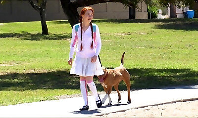 la bellezza rossa va all'aperto solo per giocare con le sue parti intime