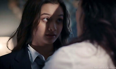Super-steamy like fire sexy office lesbian Alex De La Flor lures glamorous babe for sex