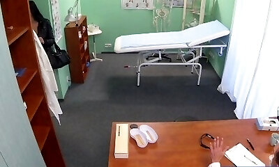 Huge-boobed brunette girl fuckd by her doctor while nurse is watching
