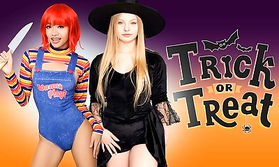 Cute platinum-blonde and pretty brunette get hotly fucked in public