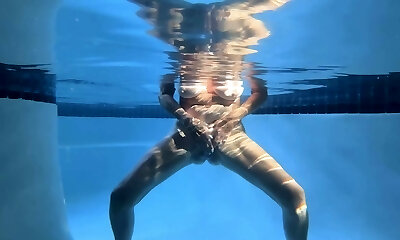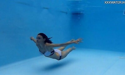 Bright nymph can hold her breath lengthy while having fun nude in the pool