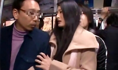 Busty, Chinese brunette is getting molested in a public buss, but she likes it a lot