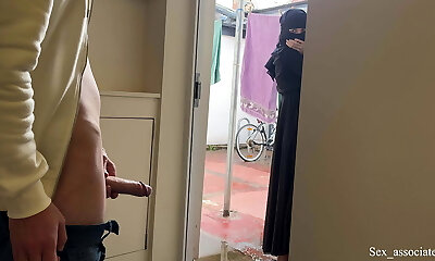 Publick Stiffy Showing. I pull out my beefstick in front of a young pregnant muslim neighbor in niqab and she helped me cum