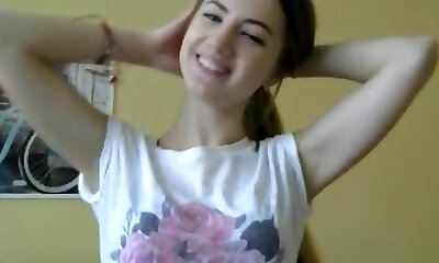 19 year old busty web cam girl with harmless face touches her big natural ti